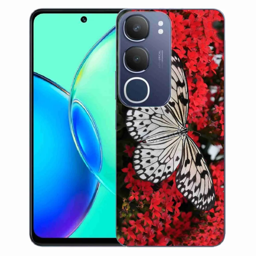 Rugalmas gél tok mmCase a Vivo Y19s képével - fekete-fehér pillangó 1