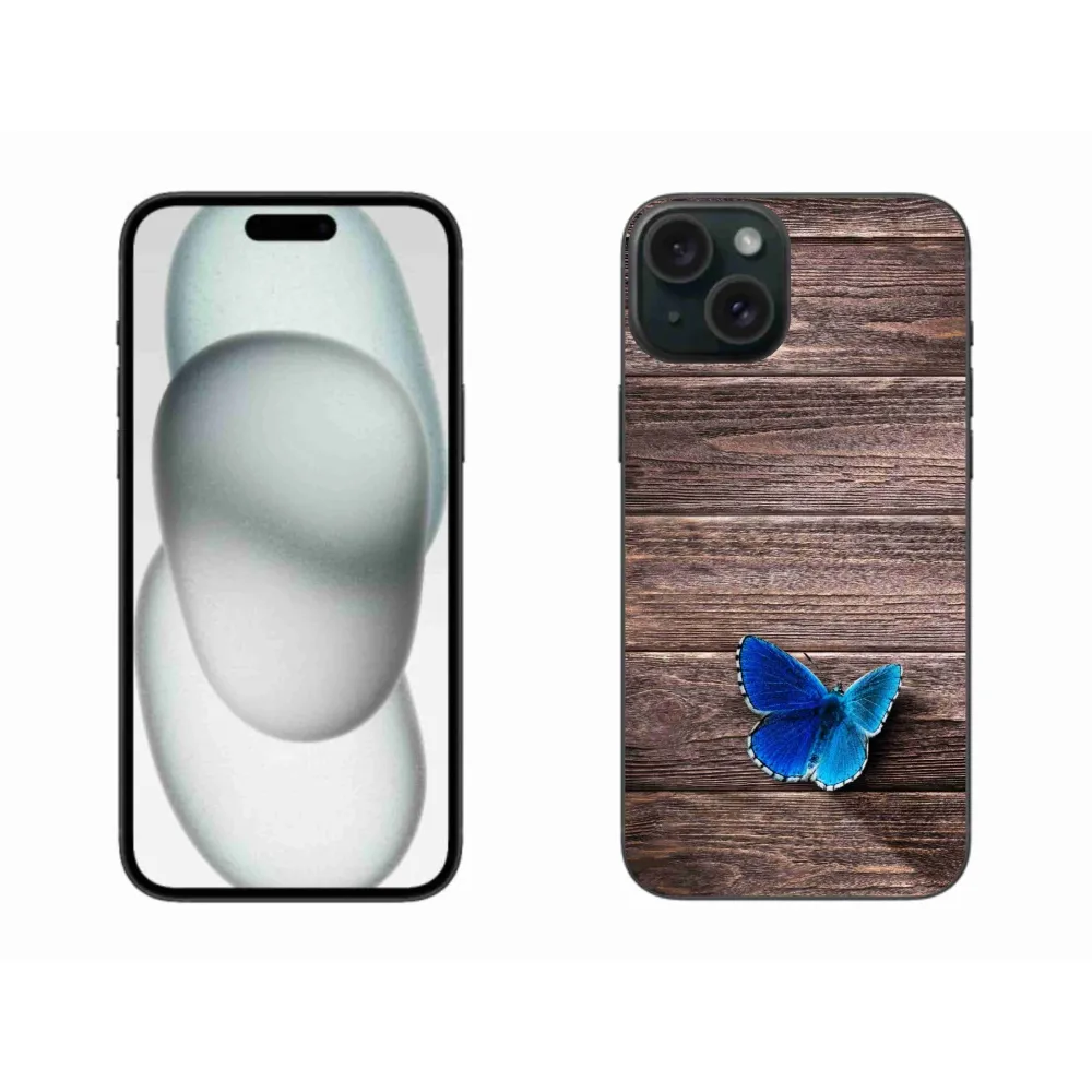 Rugalmas zselés borítás mmCase tok motívummal iPhone 15 Plus készülékhez - kék pillangó 1