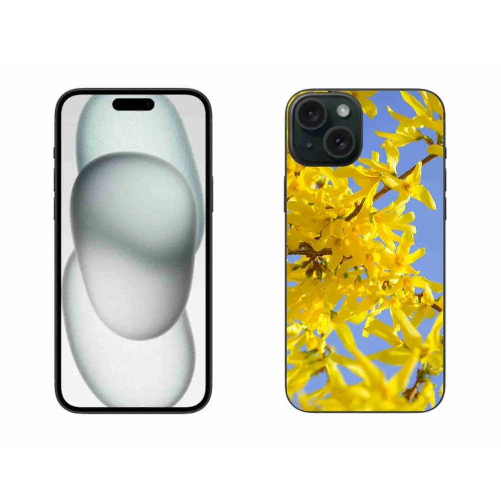 Rugalmas zselés tok mmCase képpel iPhone 15 Plus készülékhez - sárga virágok