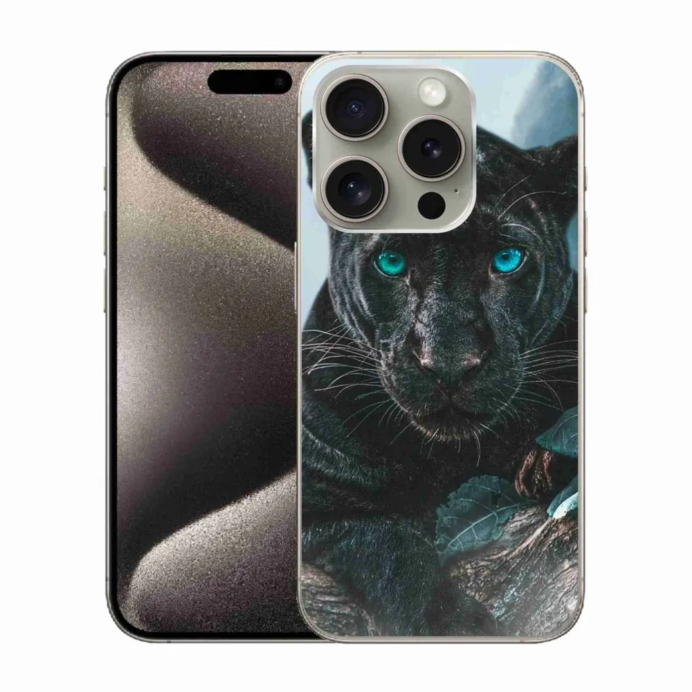 Rugalmas zselés tok mmCase képpel iPhone 15 Pro készülékhez - fekete párduc