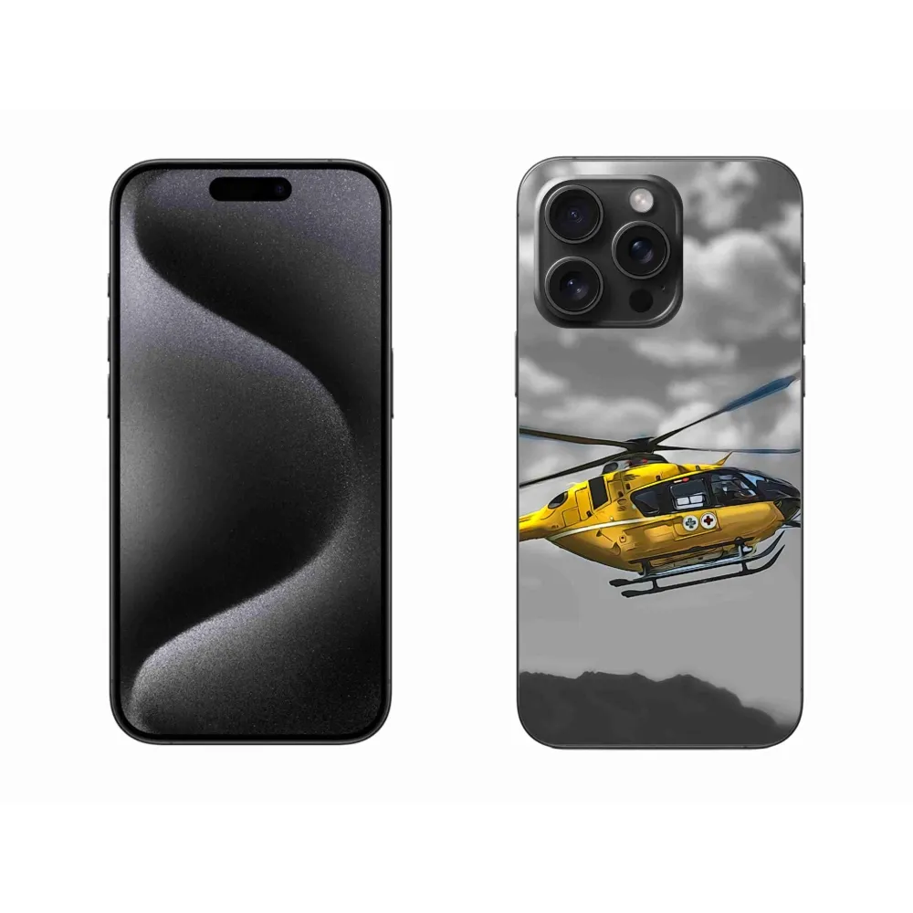 Rugalmas zselés tok mmCase képpel iPhone 15 Pro Max készülékhez - sárga helikopter