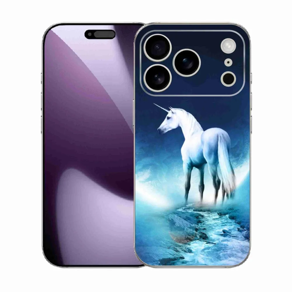 Rugalmas zselés borítás mmCase képpel iPhone 17 Pro - fehér egyszarvú