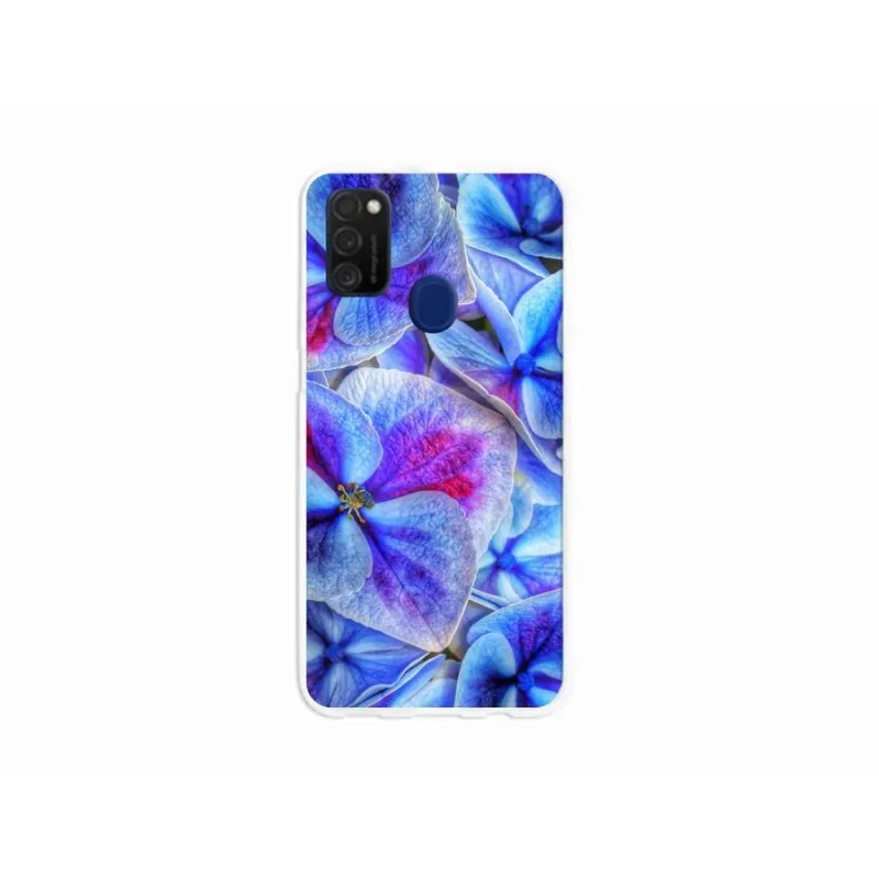 Gél védőhuzat mmCase mobiltelefonhoz Samsung Galaxy M21 - kék virágok 1