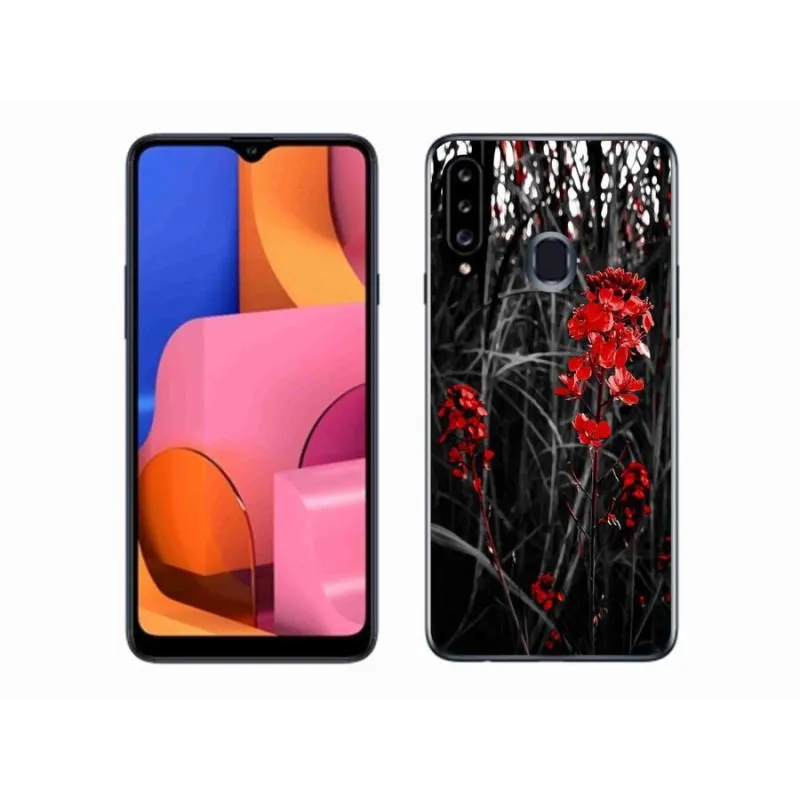 Gél védőhuzat mmCase Samsung Galaxy A20s készülékhez - piros növény