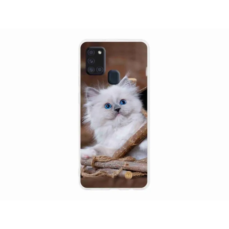 Gél védőhuzat mmCase Samsung Galaxy A21s készülékhez - fehér cica