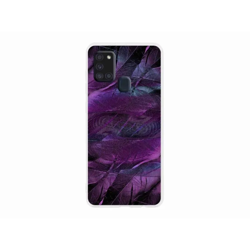 Gél védőhuzat mmCase Samsung Galaxy A21s készülékhez - lila tollak
