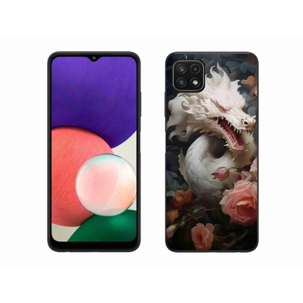 Rugalmas zselés tok mmCase képpel Samsung Galaxy A22 5G - fehér sárkány