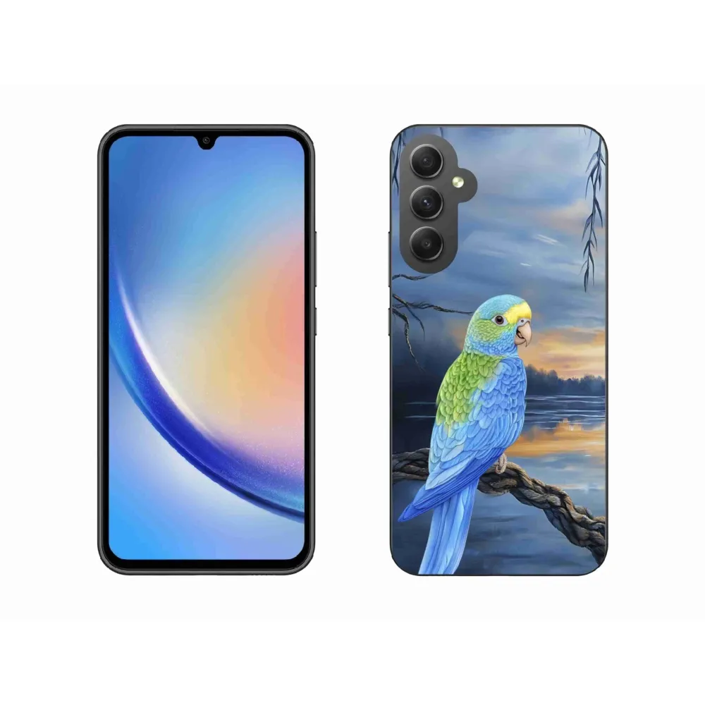 Rugalmas zselés tok mmCase a Samsung Galaxy A34 5G képével - kék papagáj