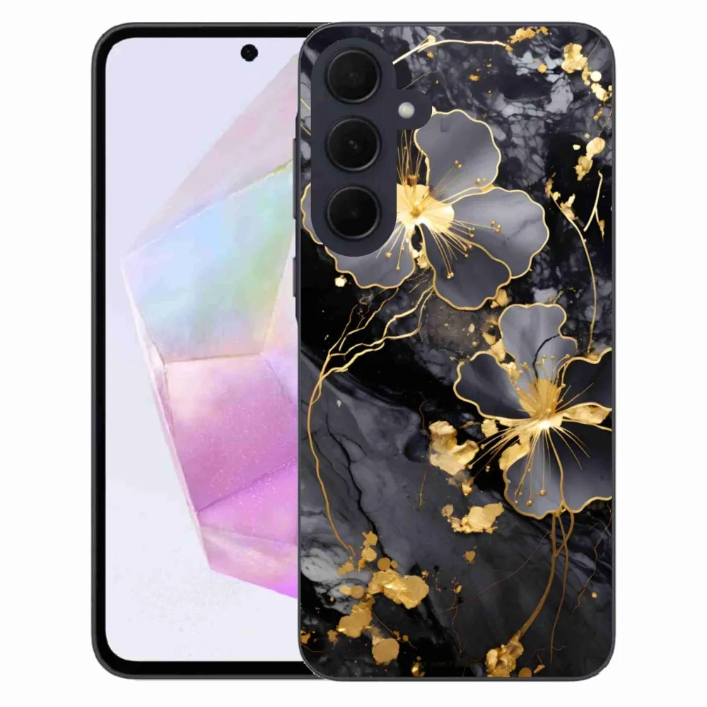 Rugalmas zselés tok mmCase a Samsung Galaxy A35 5G képével - arany virágok