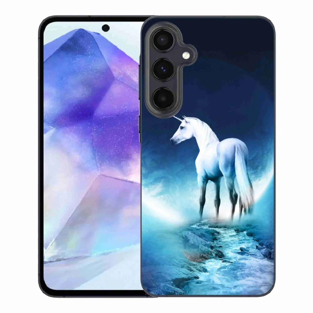 Rugalmas zselés borító mmCase Samsung Galaxy A55 5G - fehér egyszarvú - képpel Samsung Galaxy A55 5G