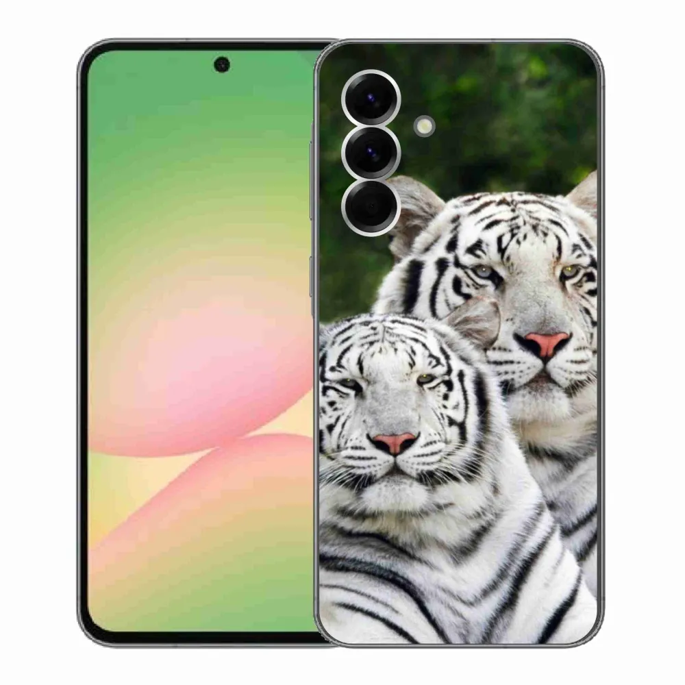 Rugalmas zselés tok mmCase a Samsung Galaxy A56 5G képével - fehér tigrisek