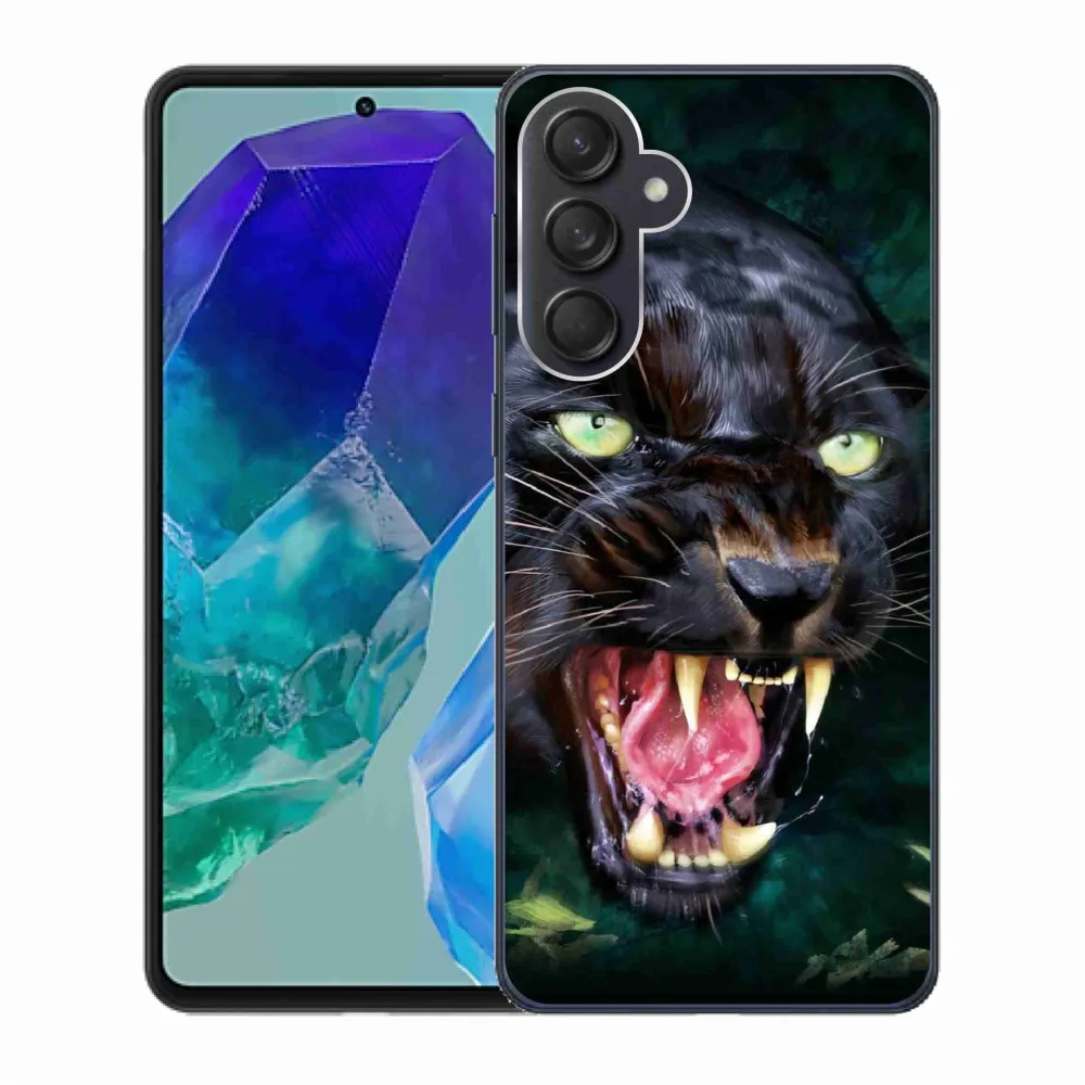 Gél borító mmCase a Samsung Galaxy M55 5G képével - dühös fekete párduc