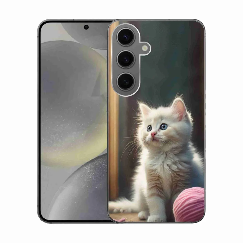 Rugalmas zselés tok mmCase képpel Samsung Galaxy S24 készülékhez - fehér cica 2