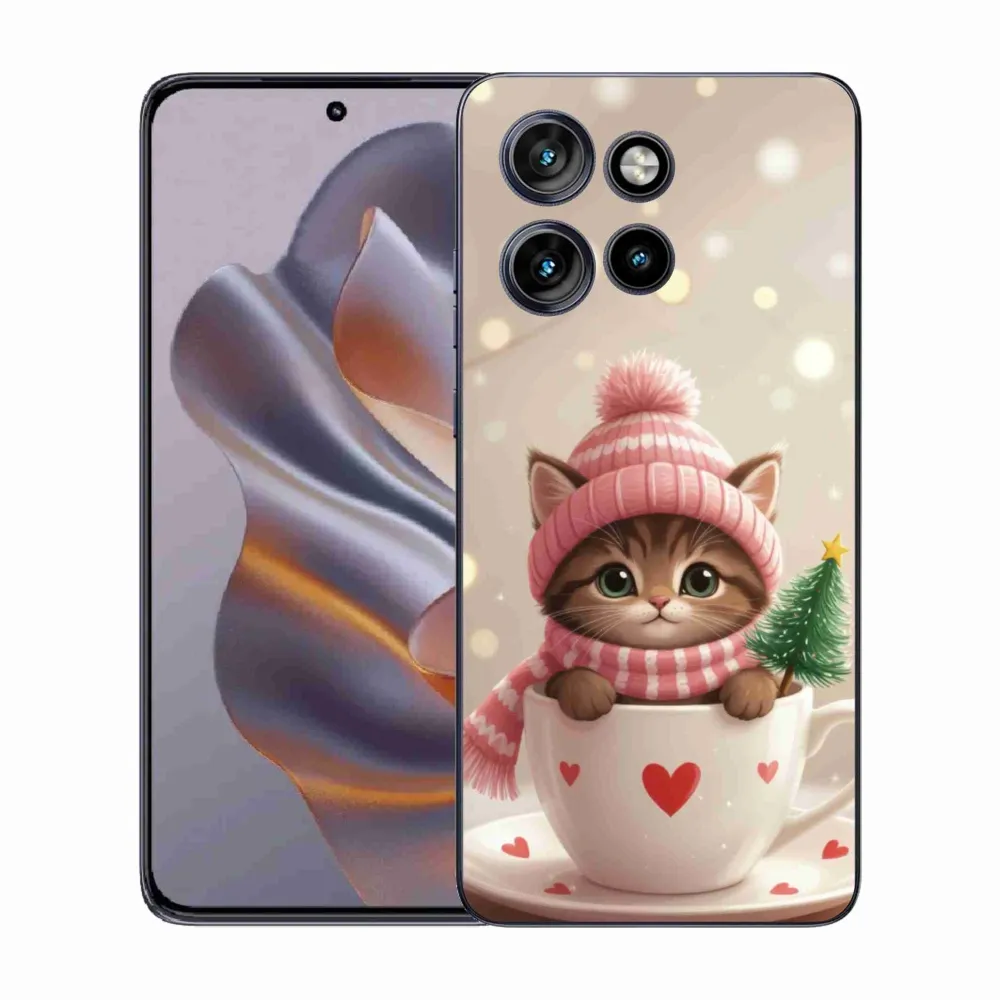 Gélborítás mmCase a Motorola Edge 50 Neo készülékhez - Karácsonyi cica a csészében