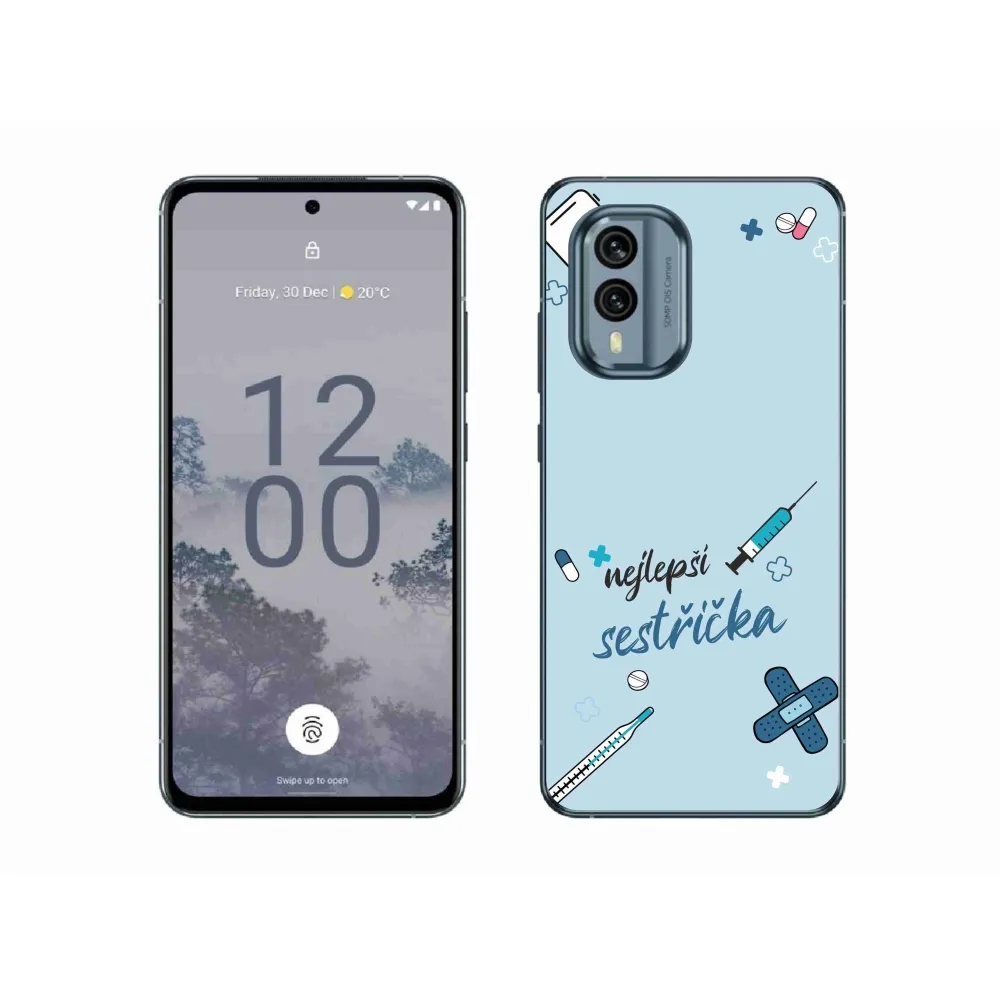 Rugalmas zselés tok mmCase a Nokia X30 5G képével - a legjobb kishúg kék háttérrel