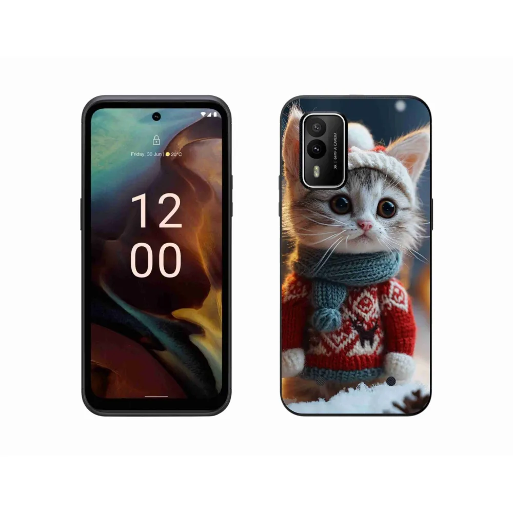 Rugalmas zselés tok mmCase képpel a Nokia XR21 készülékhez - cica pulóverben
