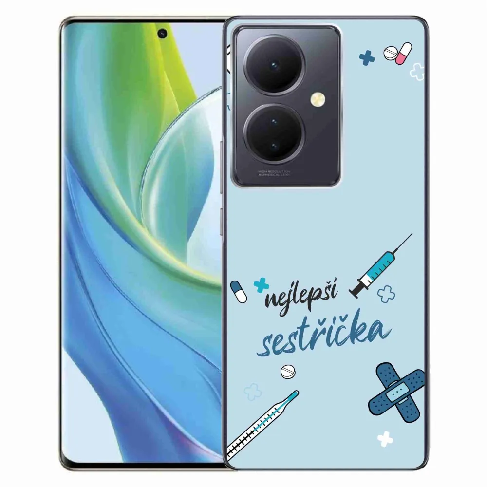 Rugalmas zselés tok mmCase a Vivo V29 Lite 5G képével - a legjobb kishúg kék háttérrel