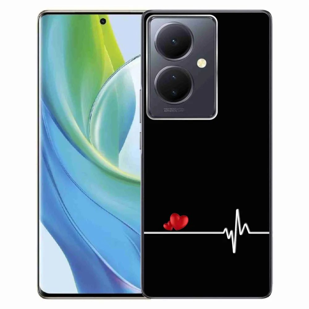 Rugalmas gél tok mmCase a Vivo V29 Lite 5G képével - szív és szívverés fekete háttérrel