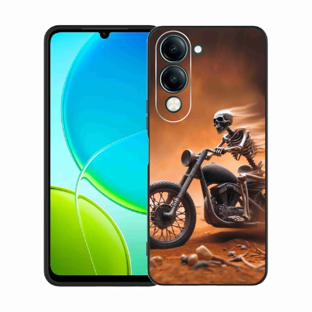 Rugalmas zselés tok mmCase a Vivo Y29s 5G képével - csontváz egy motorkerékpáron