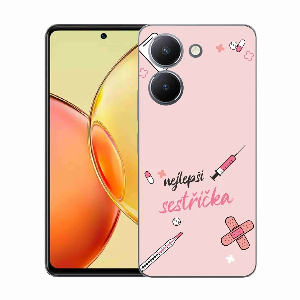 Rugalmas zselés tok mmCase a Vivo Y36 képével - a legjobb kishúg rózsaszín háttérrel