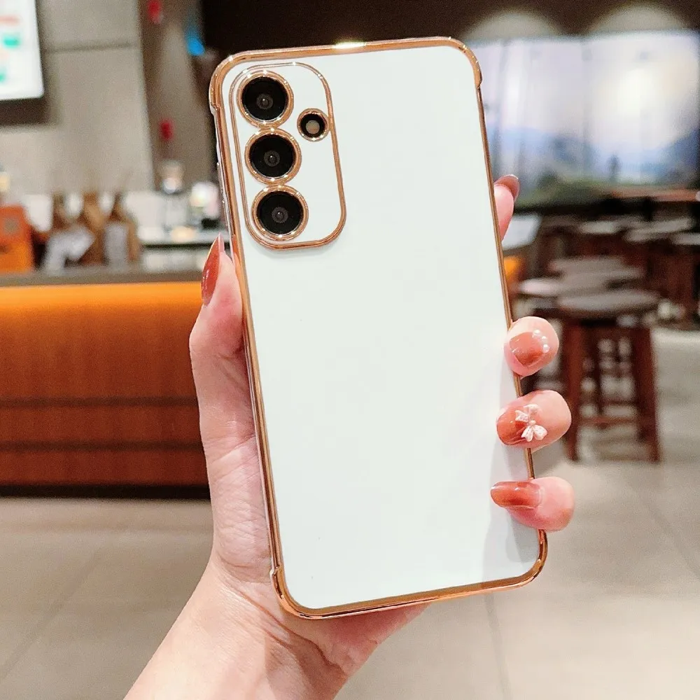 ✅【Galvanizált kialakítás】Ez a fehér keretes géltok Samsung Galaxy S25+ készülékhez elegáns, galvanizált felülettel és arany mintákkal rendelkezik, amely luxus megjelenést kölcsönöz telefonjának, miközben tartós védelmet nyújt.