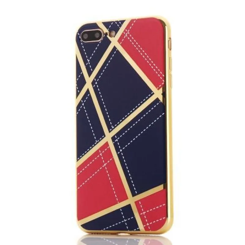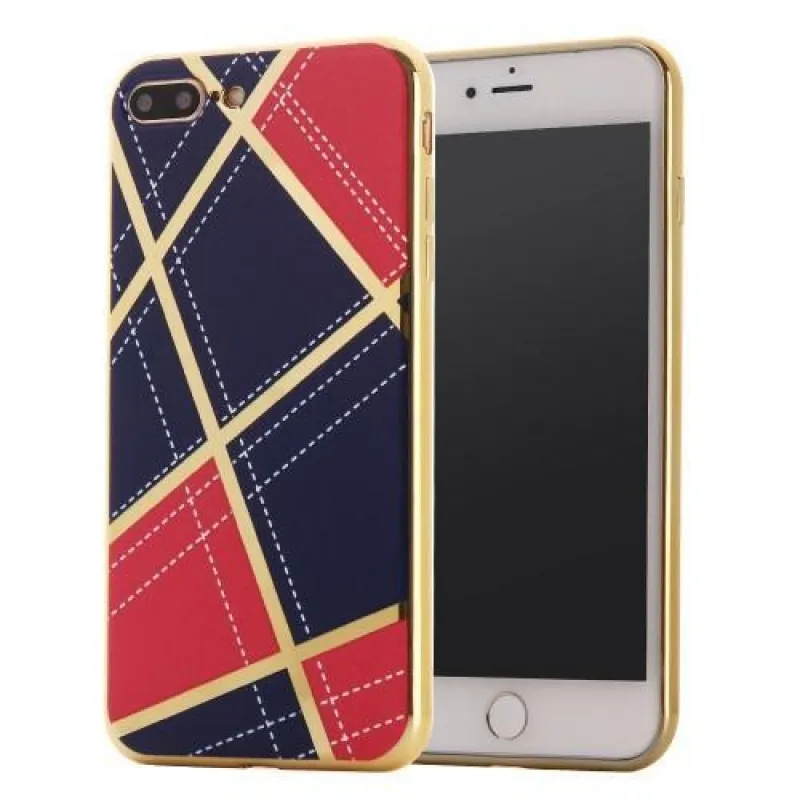 GeometricStyle tok arany díszítéssel iPhone 7 Plus és iPhone 8 Plus készülékhez - sötétkék/piros