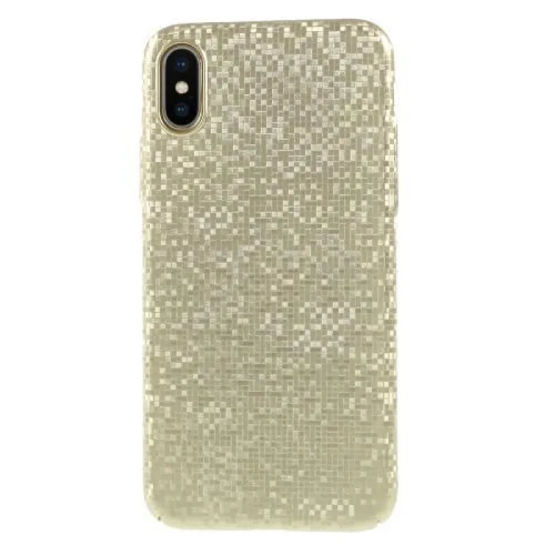Szép műanyag tok kis kockák arany mozaikjával iPhone X készülékhez