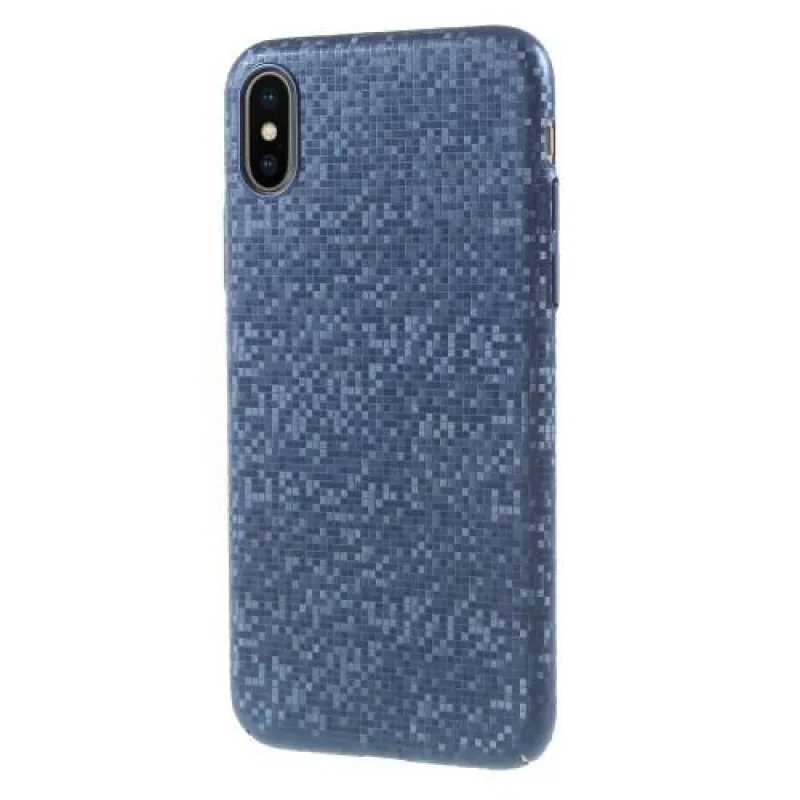 Szép műanyag tok kis kockák kék mozaikjával iPhone X készülékhez