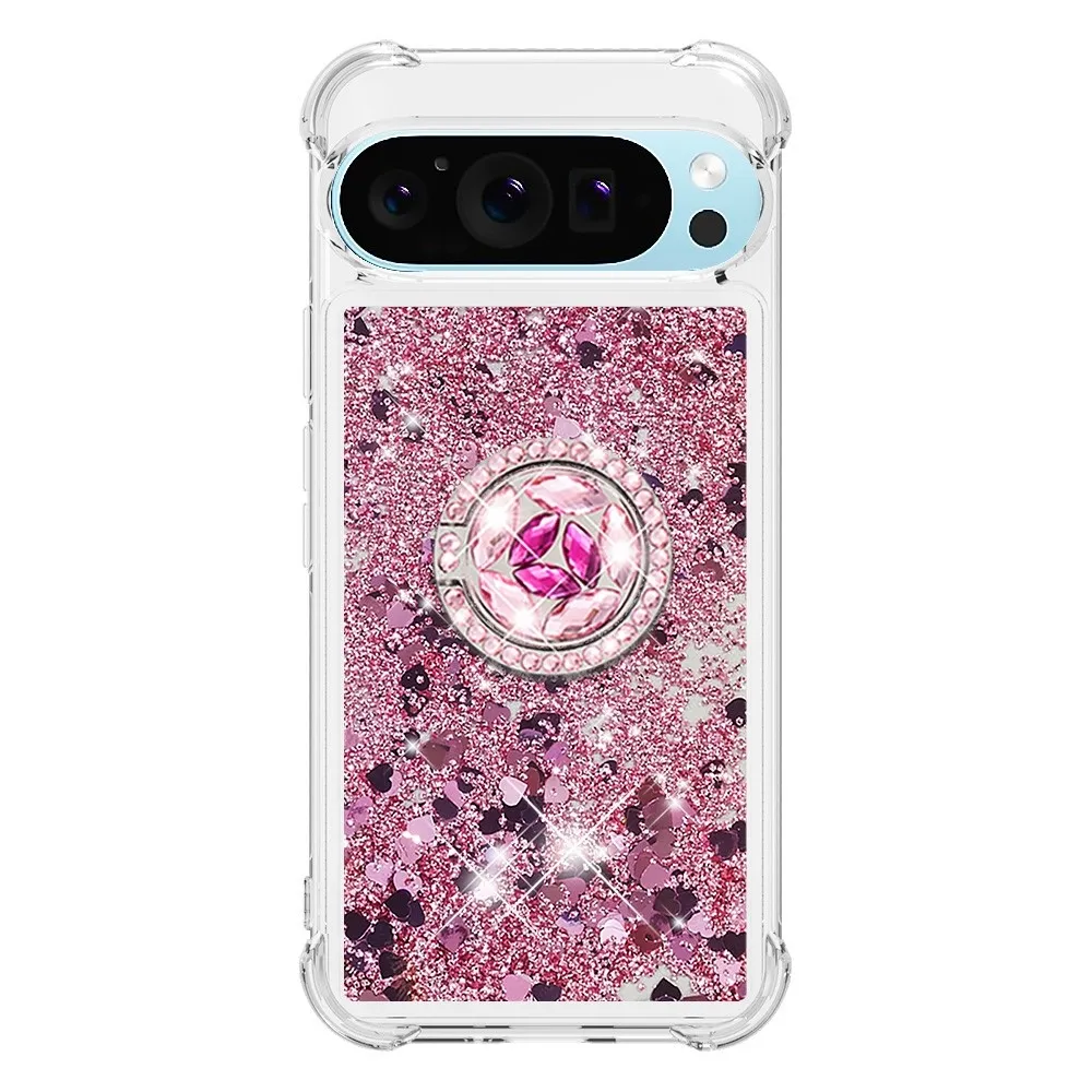 Glitt homokóra zselés tok ujjgyűrűvel a Google Pixel 10 számára - rózsaarany/szív