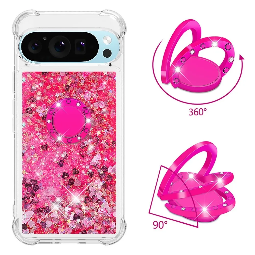 Glitt homokóra zselés tok ujjgyűrűvel a Google Pixel 10 számára - rózsaszín/szív