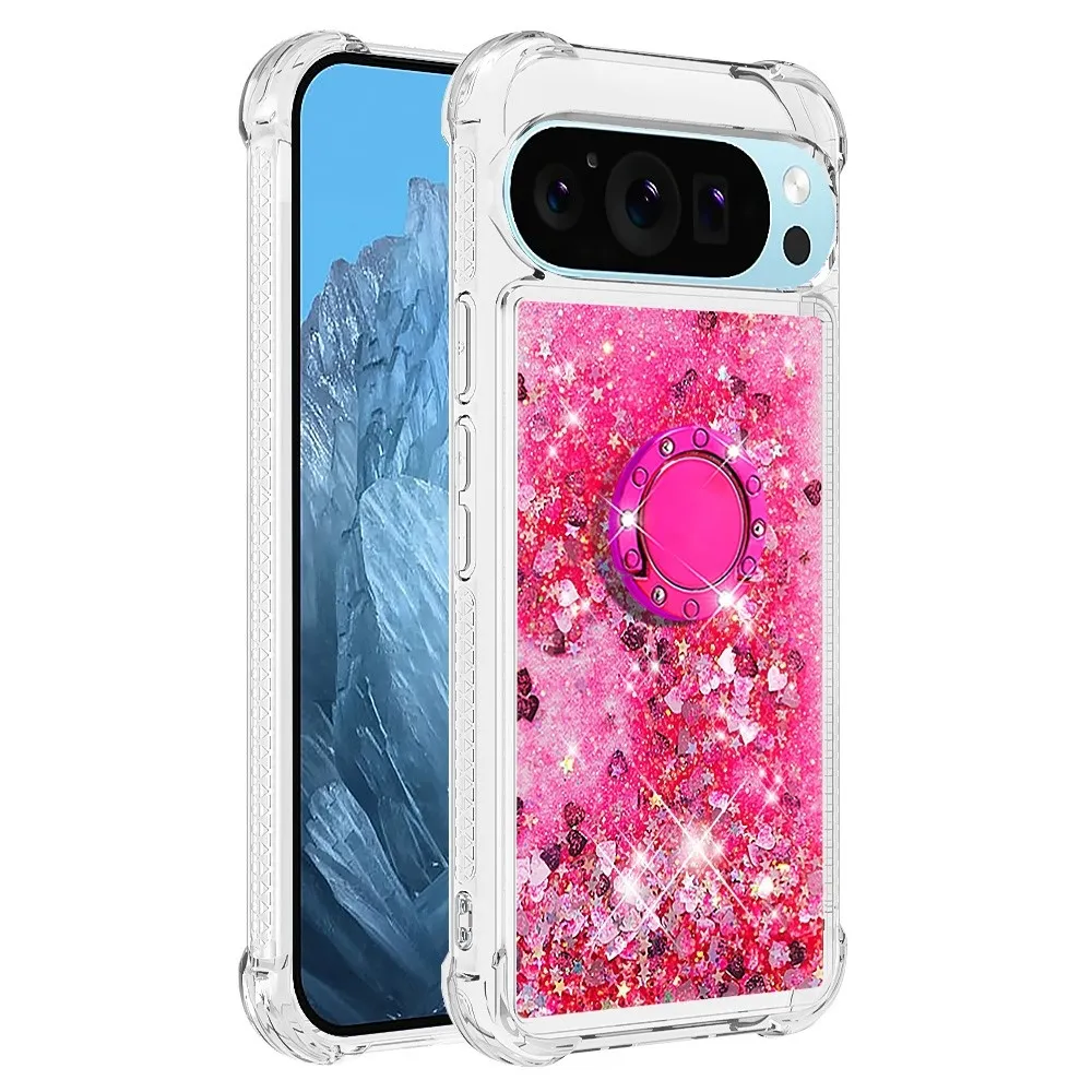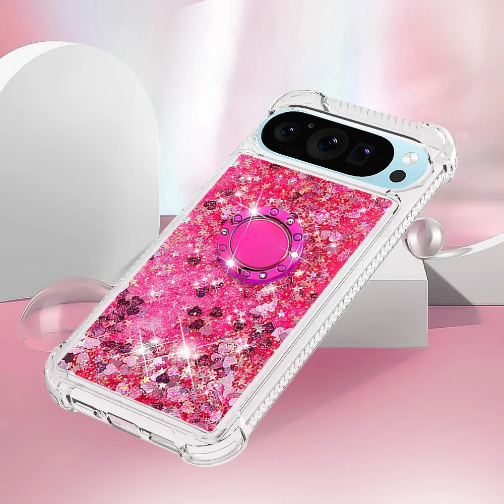 Rózsaszín szívekkel Glitt homokóra zselés borítás ujjgyűrűvel a Google Pixel 10 számára