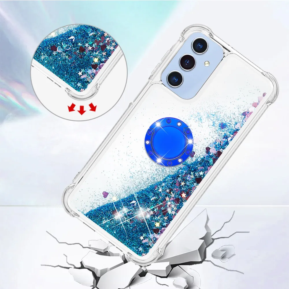 ✅【Kiváló ütésvédelem】A Samsung Galaxy A17 4G/5G - Kék/Szív Glitt tokját körülvevő puha TPU lökhárító extrém védelmet nyújt az ütések ellen, és megakadályozza az ütéseket, biztosítva, hogy telefonja biztonságban legyen a véletlen ütésektől és a mindennapi behatásoktól. ✅【Csillogó dizájn】 A folyadékban csillogó flitterek szabadon mozognak, és a vízben úszó csillagokra hasonlítanak, így a tok egyszerre szórakoztató és divatos, tökéletes arra, hogy egyedi megjelenést kölcsönözzön telefonodnak.