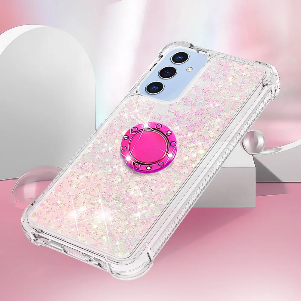 Glitt homokóra zselés tok ujjgyűrűvel Samsung Galaxy A17 4G/5G-hez - rózsaszín/csillagok