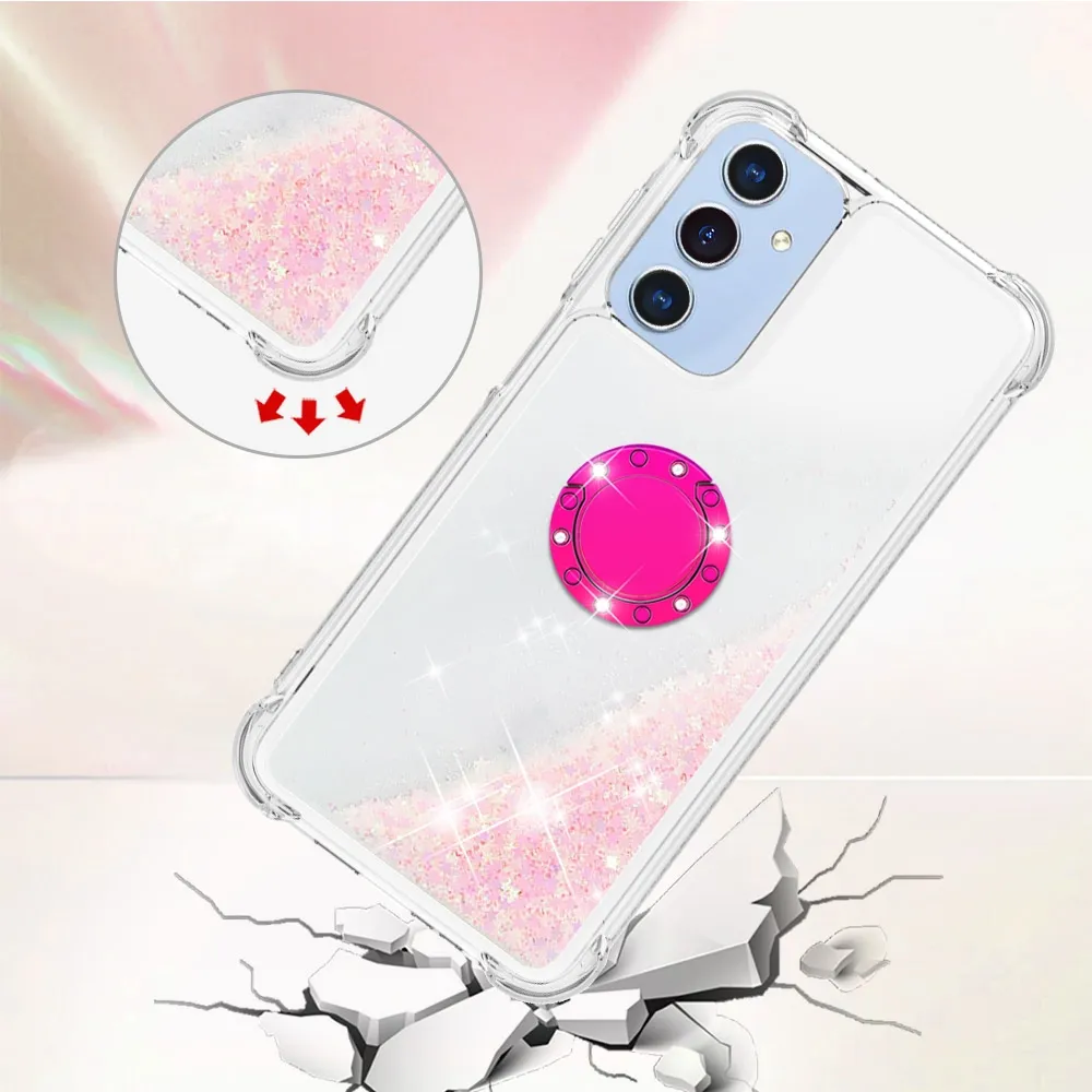 ✅【Kiváló ütésvédelem】A Samsung Galaxy A17 4G/5G - Rózsaszín/Csillagos Glitt tok körüli puha TPU lökhárító extrém védelmet nyújt az ütésekkel szemben és megakadályozza az eséseket, biztosítva, hogy telefonja biztonságban legyen a véletlen ütésektől és a mindennapokban. ✅【Csillogó dizájn】 A folyadékban csillogó flitterek szabadon mozognak, és a vízben úszó csillagokra hasonlítanak, így a tok egyszerre szórakoztató és divatos, tökéletes arra, hogy egyedi megjelenést kölcsönözzön telefonodnak.