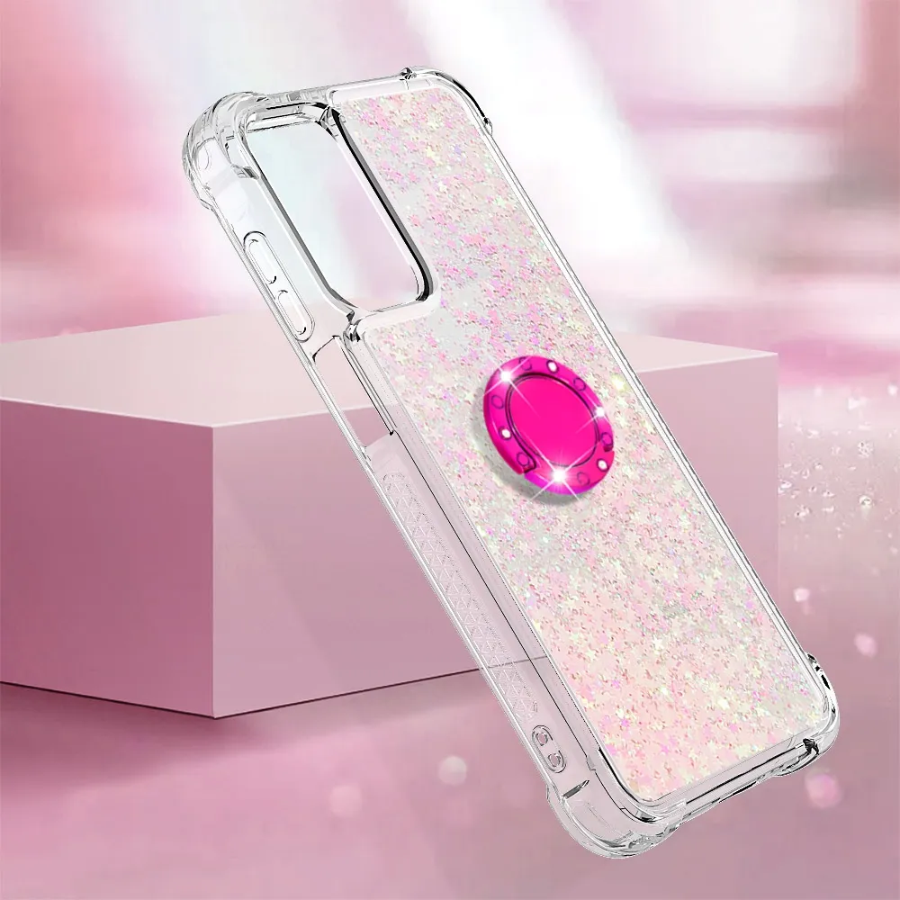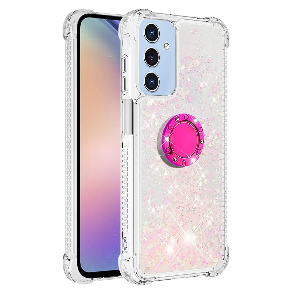 Rózsaszín csillagokkal homokóra zselés borító Glitt ujjgyűrűvel Samsung Galaxy A17 4G/5G-hez