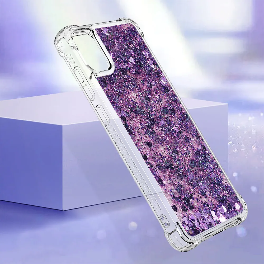 Sötét lila homokóra zselés borító Glitter szívekkel a mobiltelefonon Samsung Galaxy A07 4G