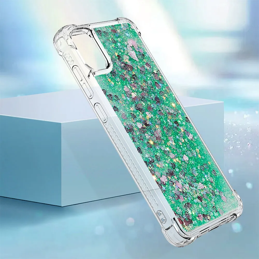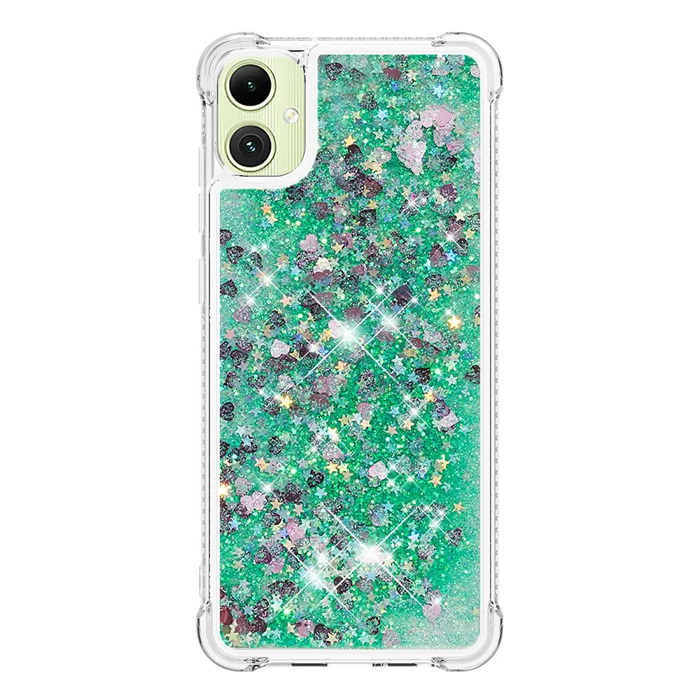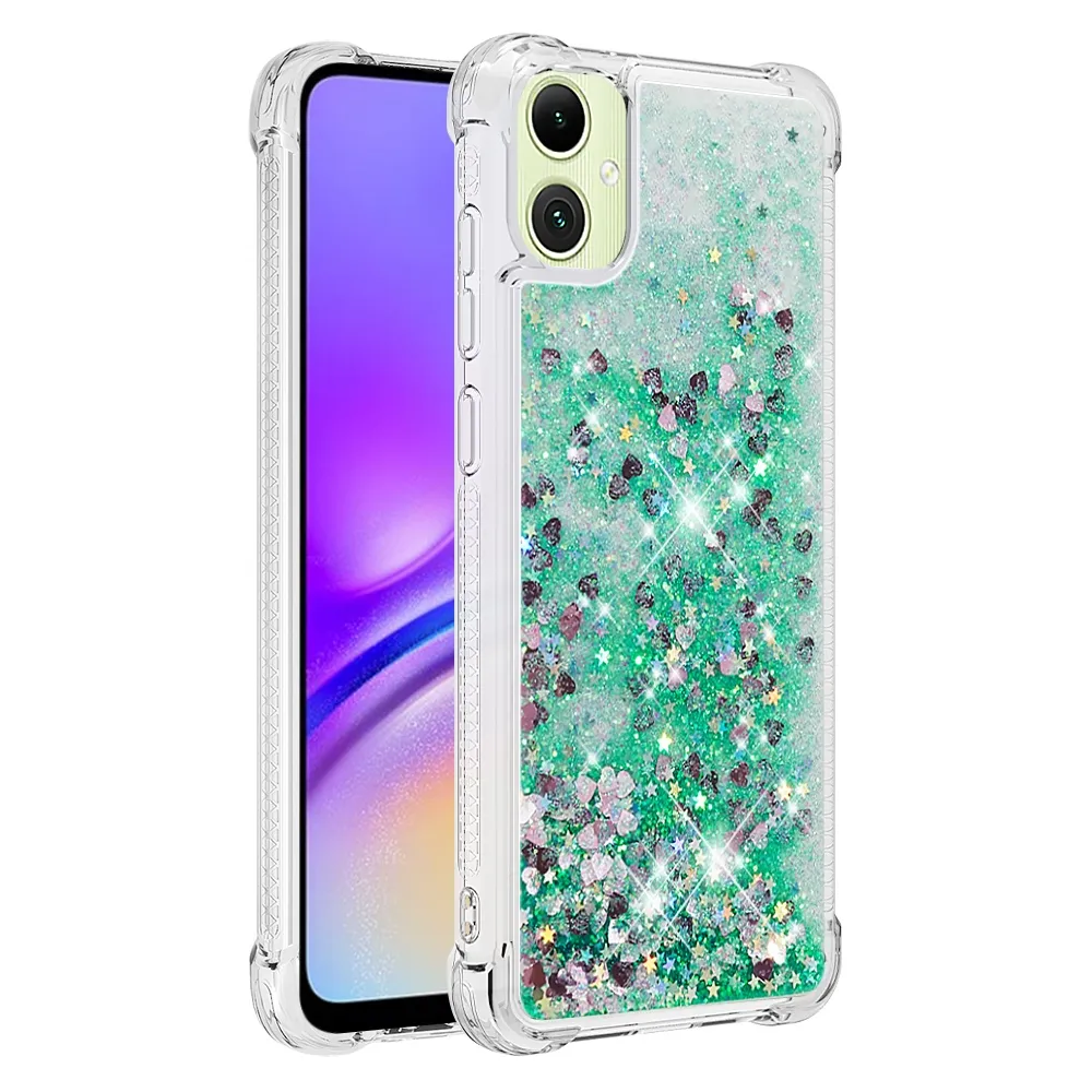 Zöld homokóra zselés borító Glitter szívekkel a mobiltelefonon Samsung Galaxy A07 4G