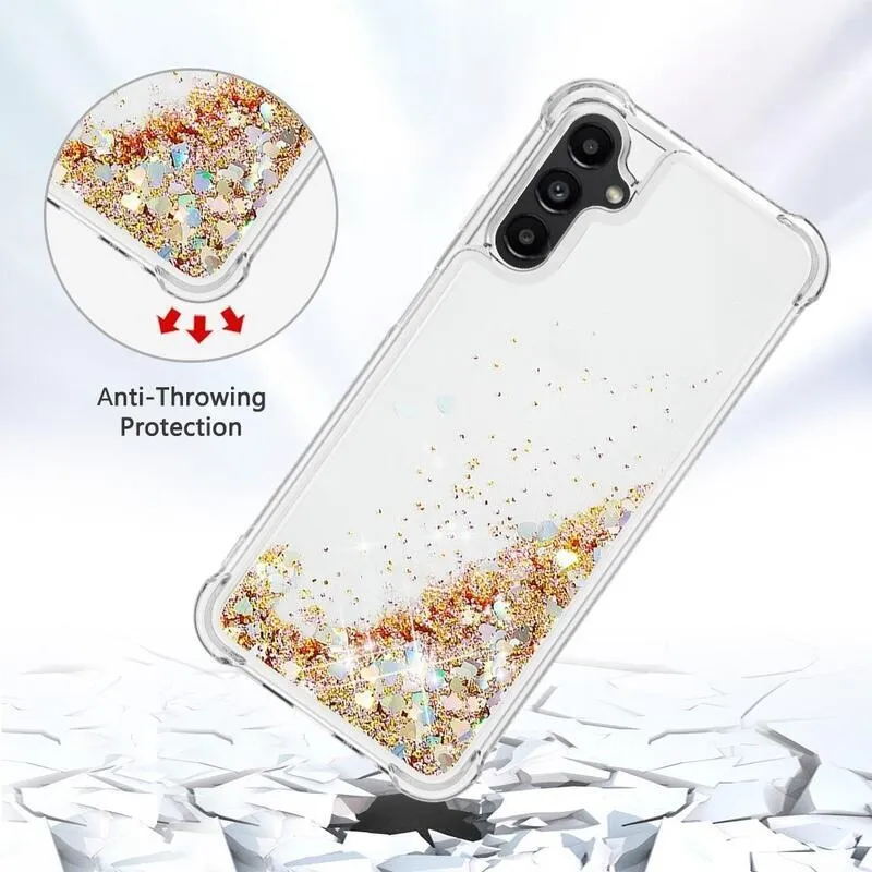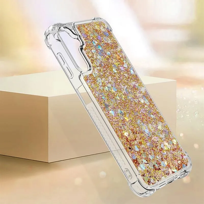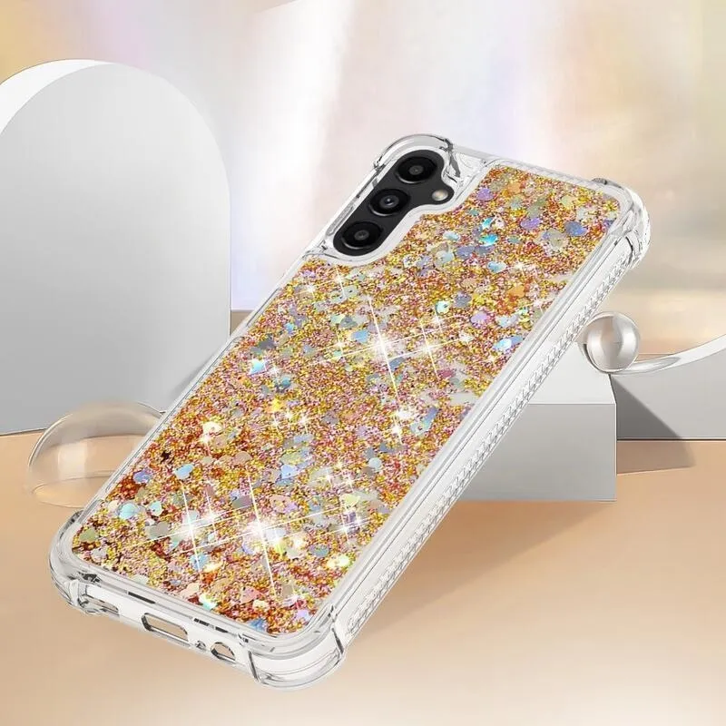 Glitter arany/szív szilikon telefon tok Samsung Galaxy A14 4G/5G készülékhez