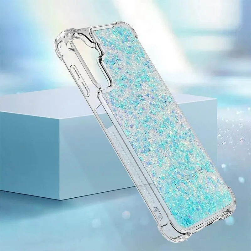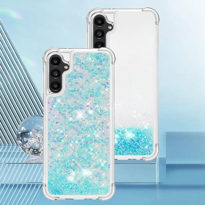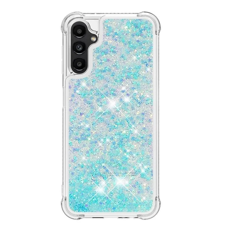 Glitter homokóra zselés tok Samsung Galaxy A14 4G/5G - kék/csillagok