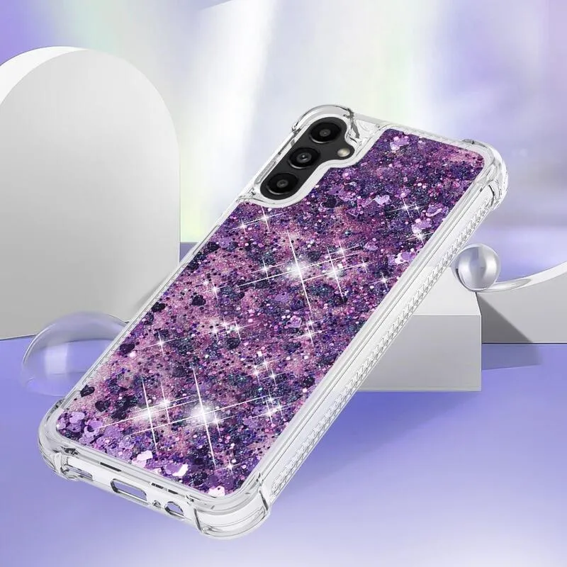 Glitter sötétlila/szív szilikon telefon tok Samsung Galaxy A14 4G/5G készülékhez