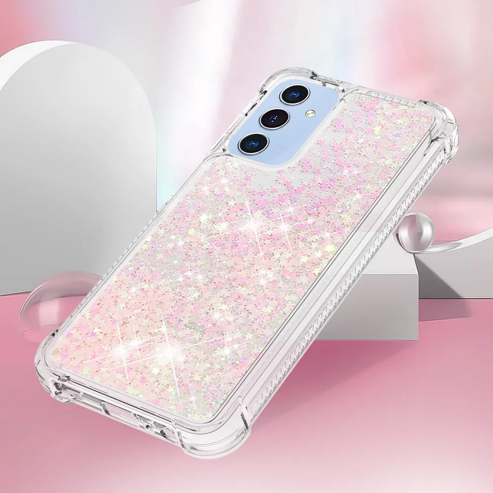 Rózsaszín csillagokkal homokóra zselés borító Glitter a mobiltelefonon Samsung Galaxy A17 4G/5G