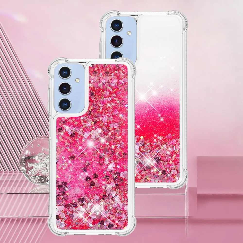 Rózsaszín szívekkel homokóra zselés borító Glitter a mobiltelefonon Samsung Galaxy A17 4G/5G