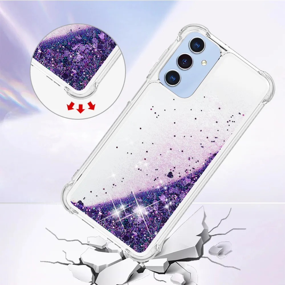 Sötét lila szívekkel homokóra zselés borító Glitter Samsung Galaxy A17 4G/5G számára