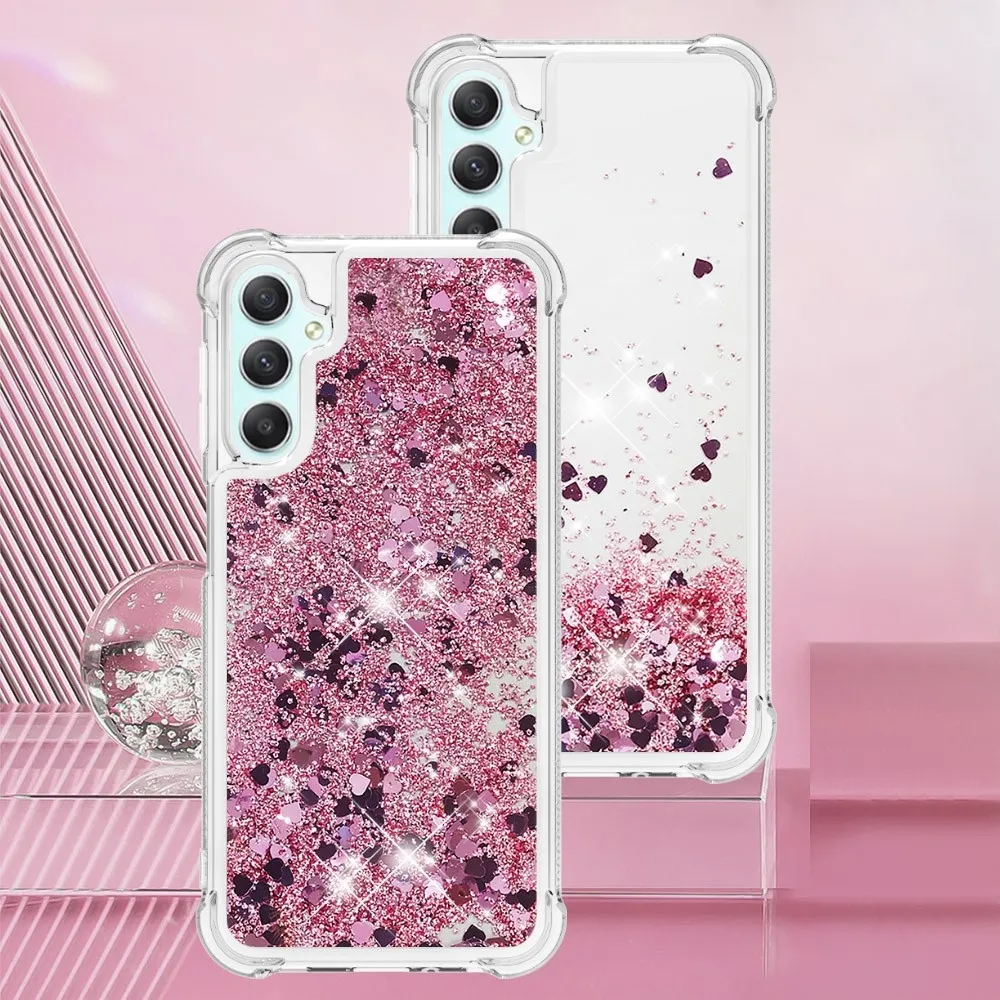 Gél homokóra borítás Glitter Samsung Galaxy A24 - rózsa arany / szívek