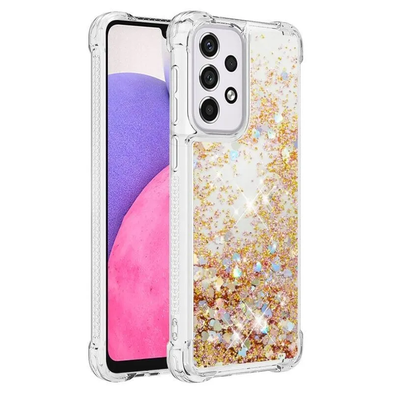 Glitter homokóra zselés tok Samsung Galaxy A33 5G - arany/szív