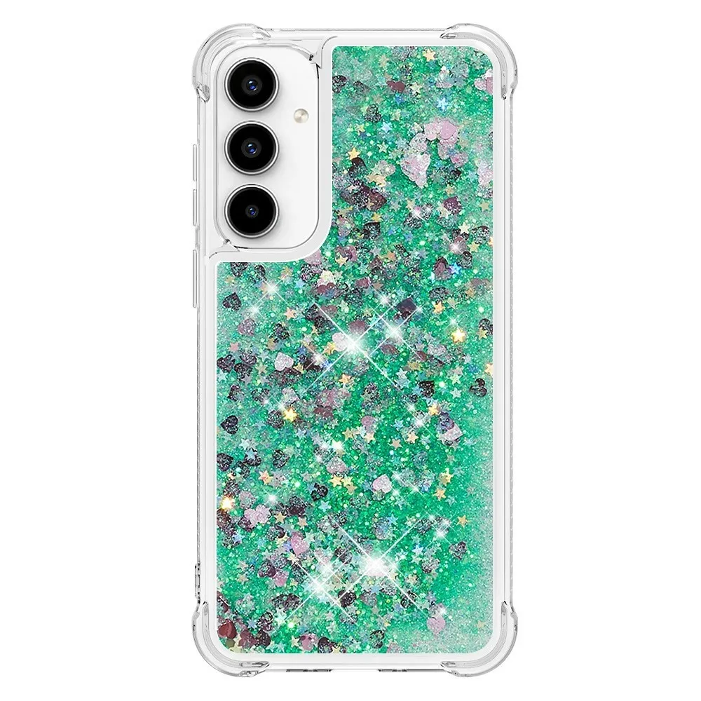 Glitter homokóra zselés tok Samsung Galaxy A37 5G - zöld/szívek