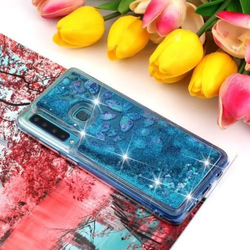 Glitter homokóra zselés tok Samsung Galaxy A9 - kék pillangó