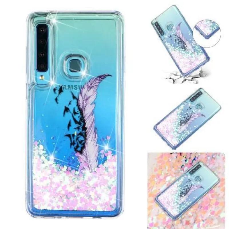 Glitter homokóra zselés tok Samsung Galaxy A9 készülékhez - lila toll