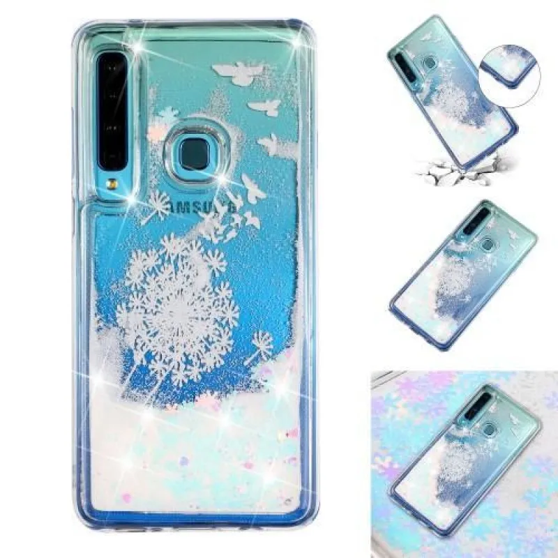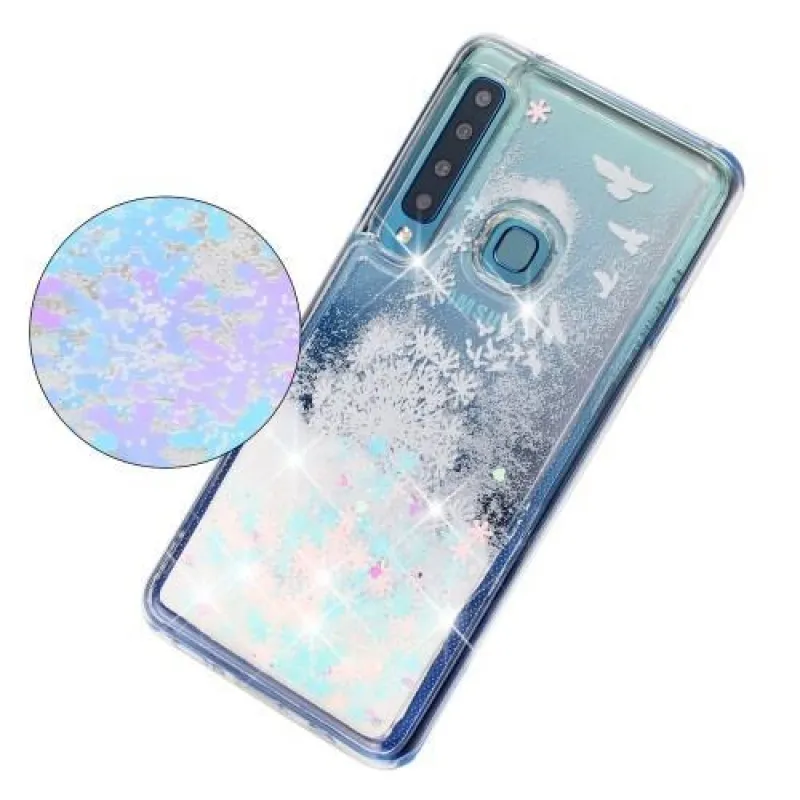 Modern borító kép motívummal madarak és pitypang Glitter homokóra zselés tok Samsung Galaxy A9-hez