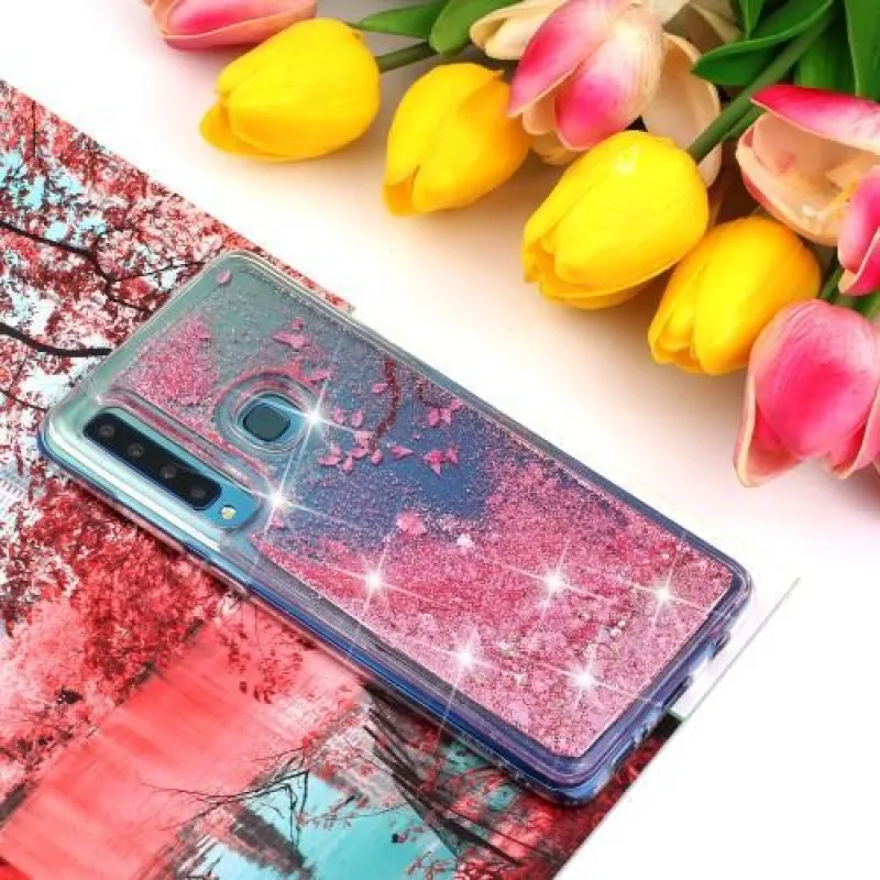 Modern borító egy kép motívum szirmokkal - Glitter homokóra zselés tok Samsung Galaxy A9 készülékhez